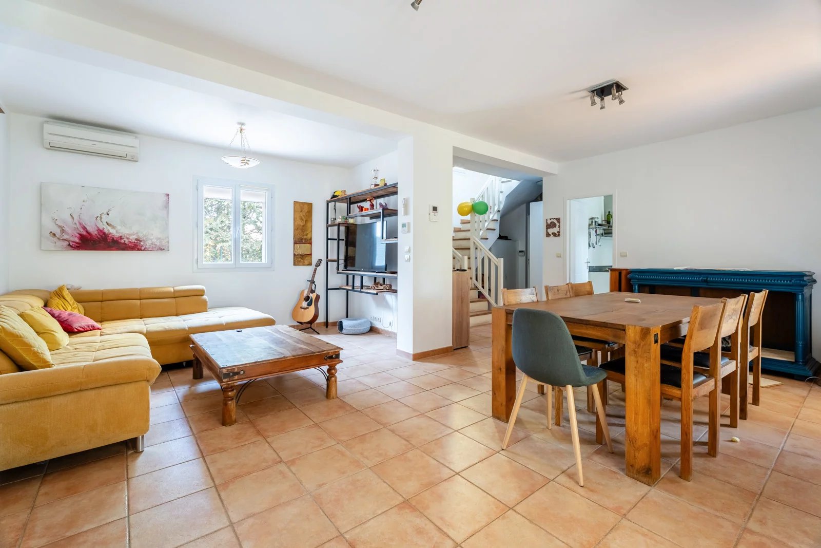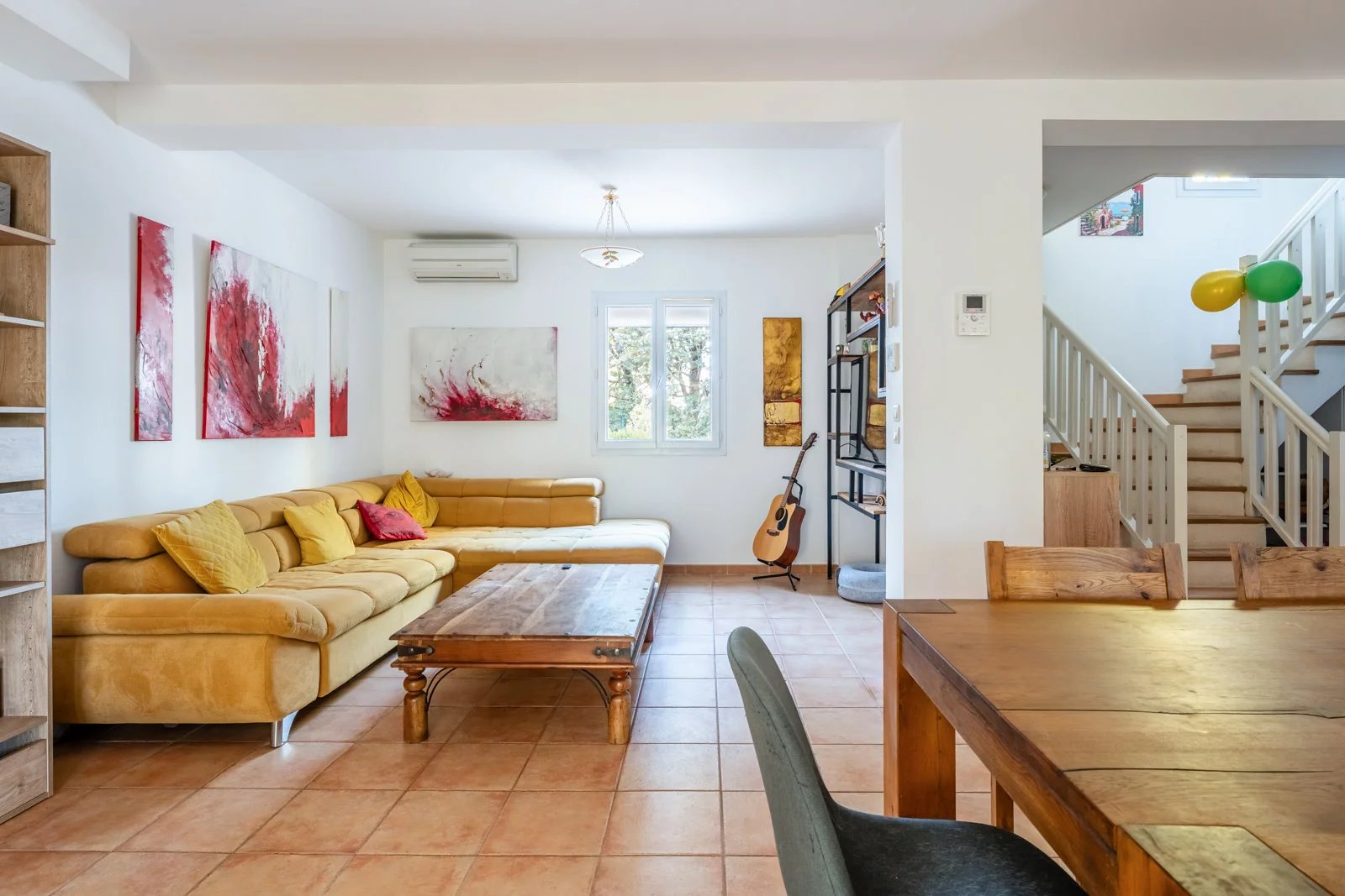 Orientée au Sud, la maison bénéficie d'une belle luminosité et d'une vue sur la verdure. La maison est mitoyenne avec une autre villa par le mur Est.